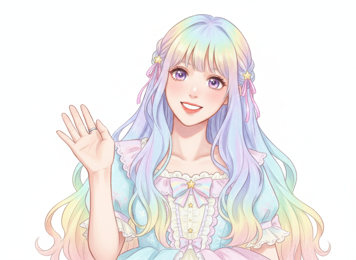 11. Ubah foto menjadi karakter anime magical girl, mata besar berkilau, rambut panjang dengan pita atau aksesoris lucu, ekspresi ceria. Warna pastel lembut, tekstur sapuan krayon atau gouache digital. Latar polos putih/krem agar fokus pada karakter. Negative Prompt: Jangan ubah pose ekstrem, hindari garis tajam atau efek realistis.