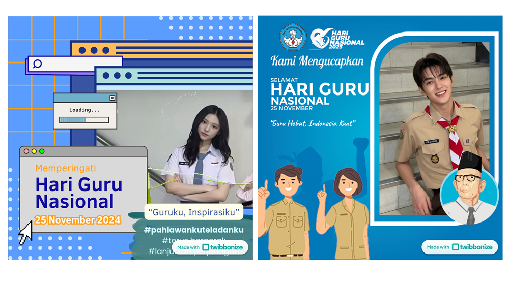 Karena itu, berbagai desain Twibbon dengan tema “Merawat Semesta dengan Cinta” dan “Guru Hebat, Indonesia Kuat” mulai bermunculan dan siap digunakan.