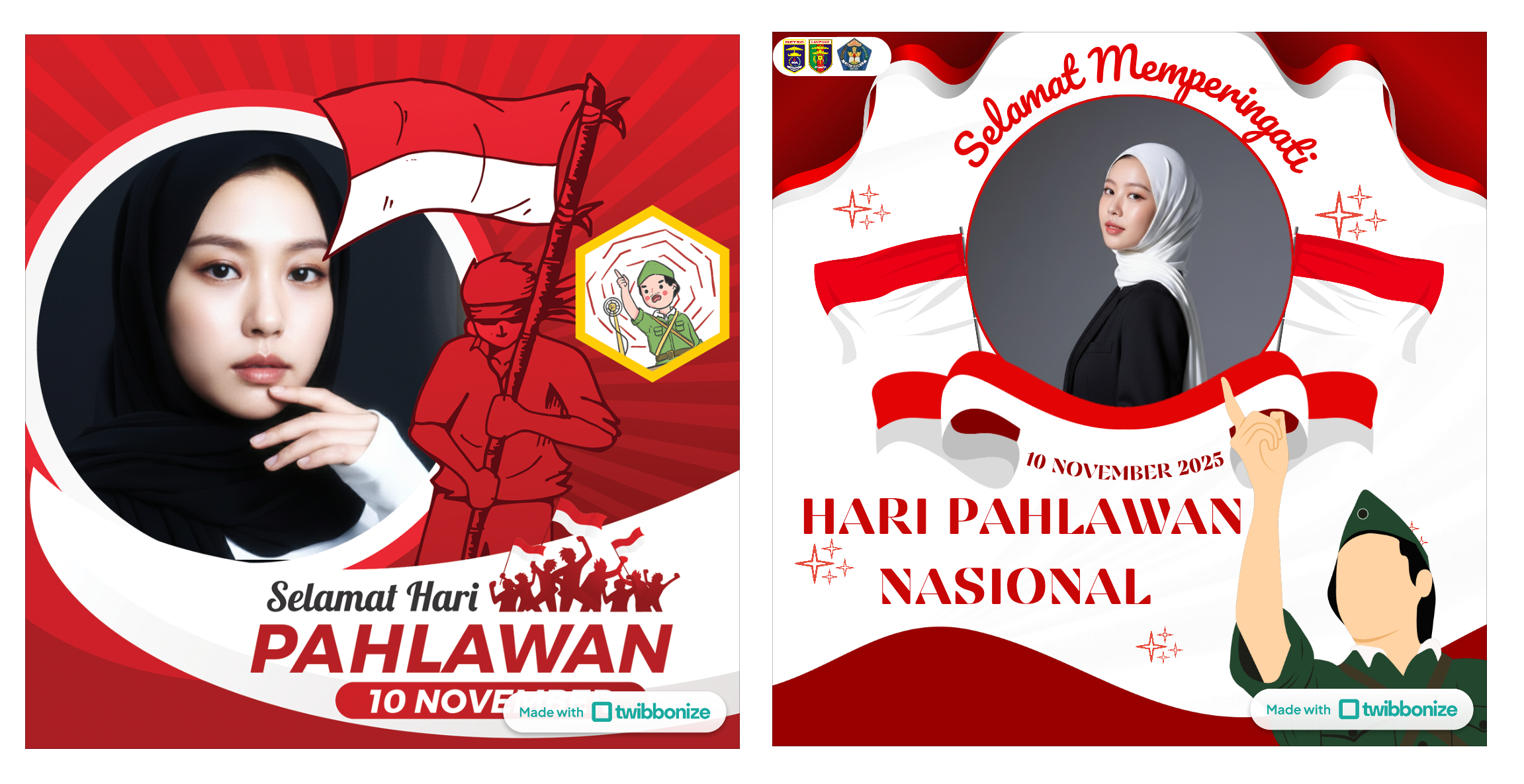 Berikut ini tautan Twibbon Hari Pahlawan 2025 yang kami himpun dari Twibbonize dan dapat Anda gunakan secara gratis.