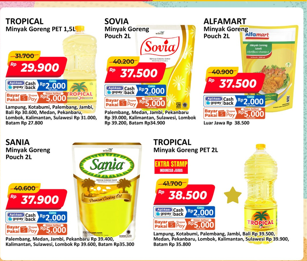 • Tropical Minyak Goreng Pet 2L (periode 8–15 Okt): Rp38.500