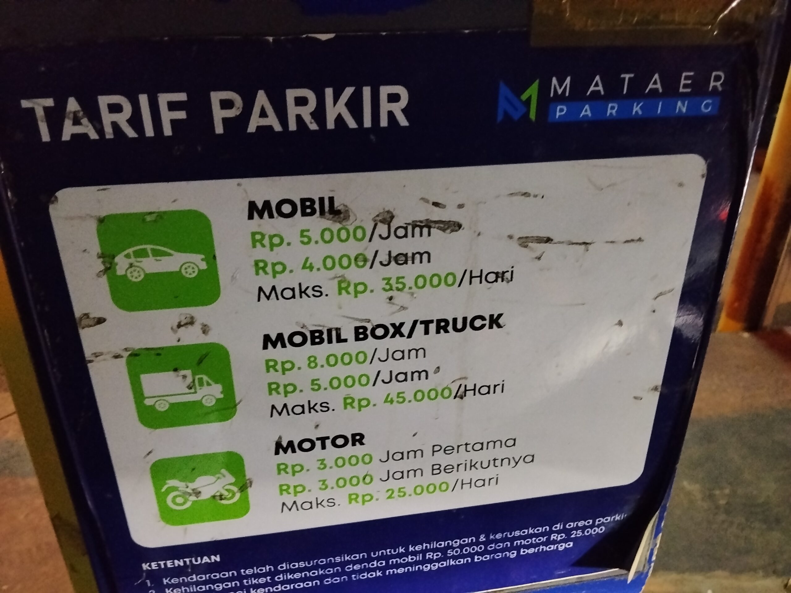 Pantauan di lokasi, menemukan harga perkiraan sepeda motor yang seharusnya jam kedua dan selanjutnya Rp 2.000 menjadi Rp. 3.000, lalu mobil box, truk atau bus yang seharusnya jam pertama Rp. 7.000 menjadi Rp. 8.000, serta untuk jam kedua dan selanjutnya Rp. 4.000 menjadi Rp. 5.000.