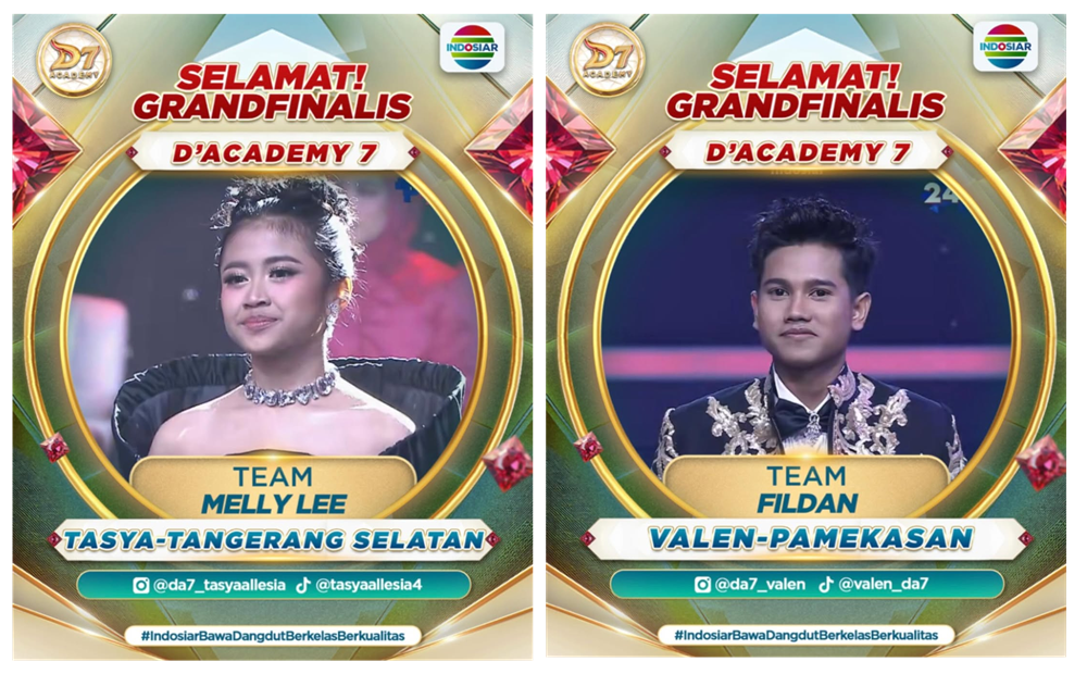 Dua nama yang berhasil melaju ke fase puncak Grand Final Dangdut Academy 7 adalah Tasya asal Tangerang Selatan, Banten, dan Valen dari Pamekasan, Jawa Timur.