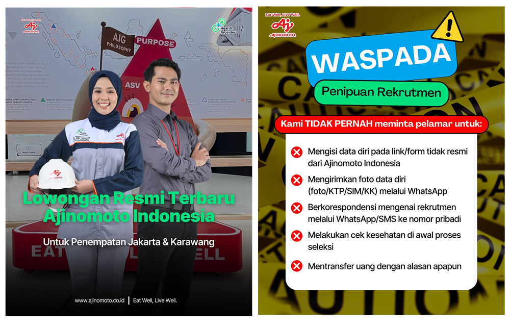 Ajinomoto juga menegaskan bahwa seluruh proses perekrutan tidak dipungut biaya.