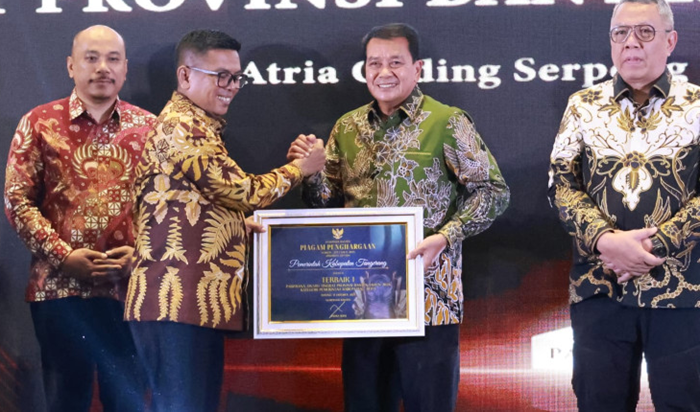 Penghargaan tersebut diterima langsung oleh Bupati Tangerang, Moch. Maesyal Rasyid, dari Gubernur Banten Andra Soni dalam malam penganugerahan di Hotel Atria, Gading Serpong, Kamis (27/11/2025).
