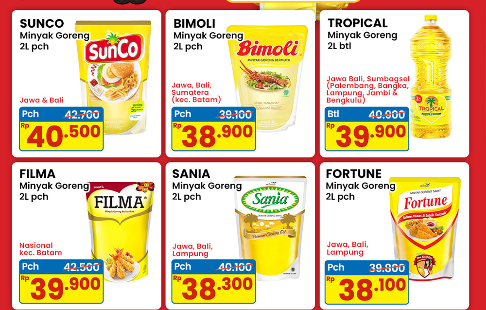 - Indomaret/Larisst Minyak Goreng 2L pouch: Rp36.500