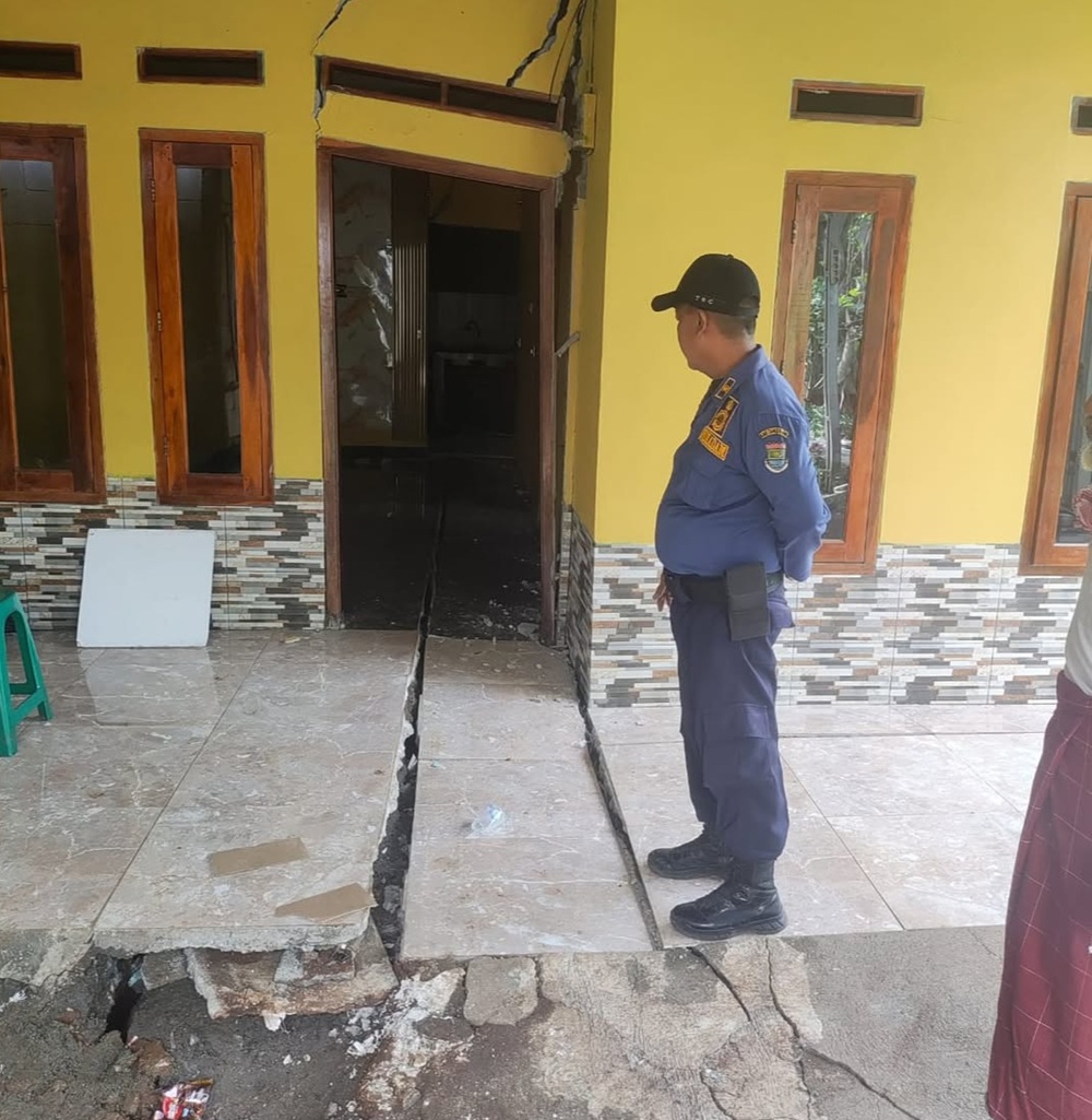 BPBD menyebutkan, dampak pergeseran tanah menyebabkan lantai rumah warga mengalami retakan serius dan ambles hingga nyaris tidak layak huni.